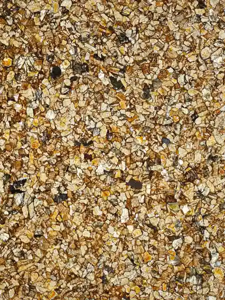 Vermiculite is a natural, non-toxic mineral that belongs to the silicate family. It has a unique layered structure composed of tetrahedral crystals formed by two layers of positive ions and one layer of octahedral crystals. When subjected to high temperatures, the water in vermiculite evaporates, causing the layered structure to expand and increase in volume by 6-20 times, taking on a worm-like or insect-like appearance, hence the name “vermiculite”.